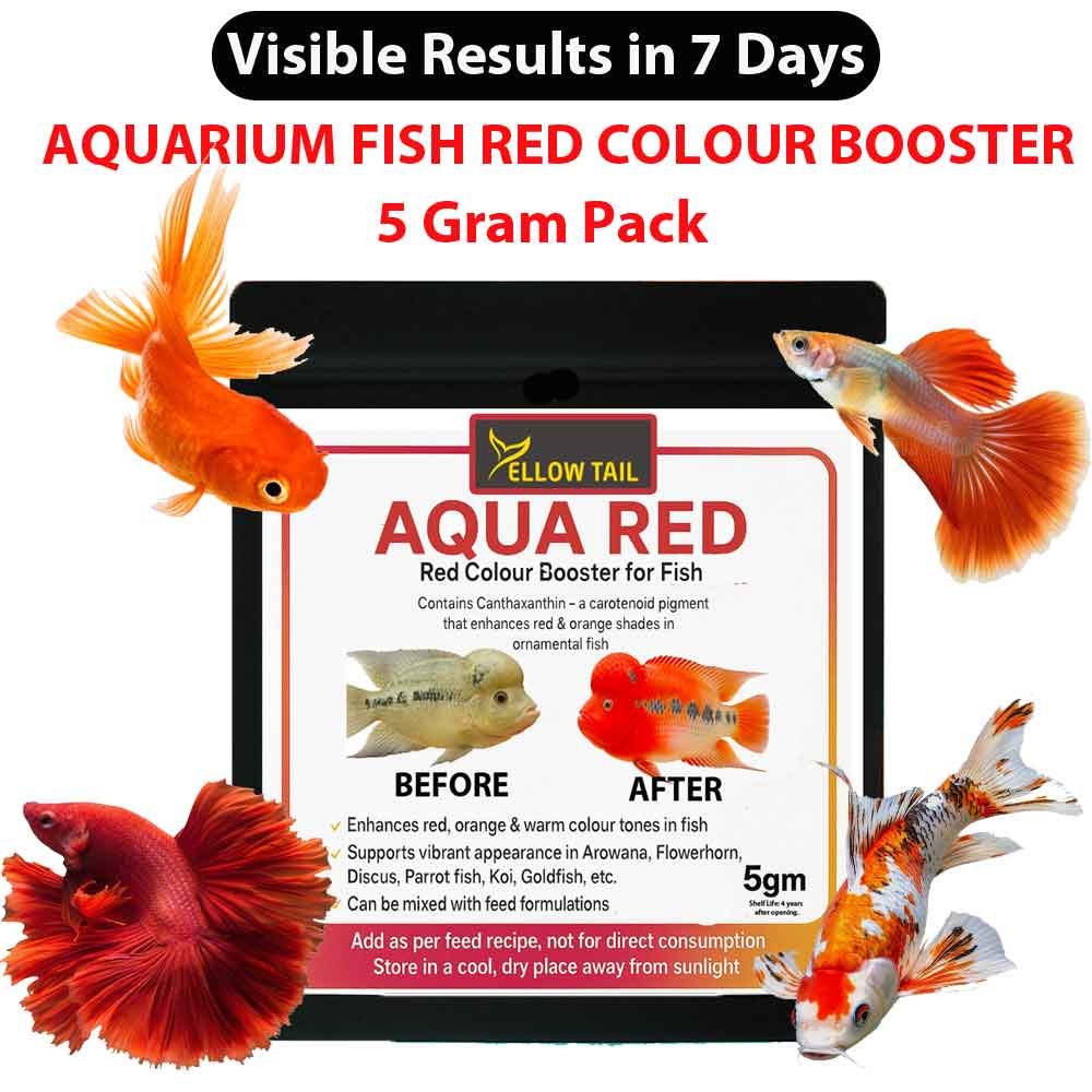 നിങ്ങളുടെ അലങ്കാര ചുവപ്പ് മീനുകൾക്ക് പ്രകൃതിദത്തവും സുരക്ഷിതവുമായ നിറം വർധിപ്പിക്കാൻ യെല്ലോ ടെയിൽ ആക്വ റെഡ് 5 ഗ്രാം ഏറ്റവും നല്ല തിരഞ്ഞെടുപ്പാണ്.