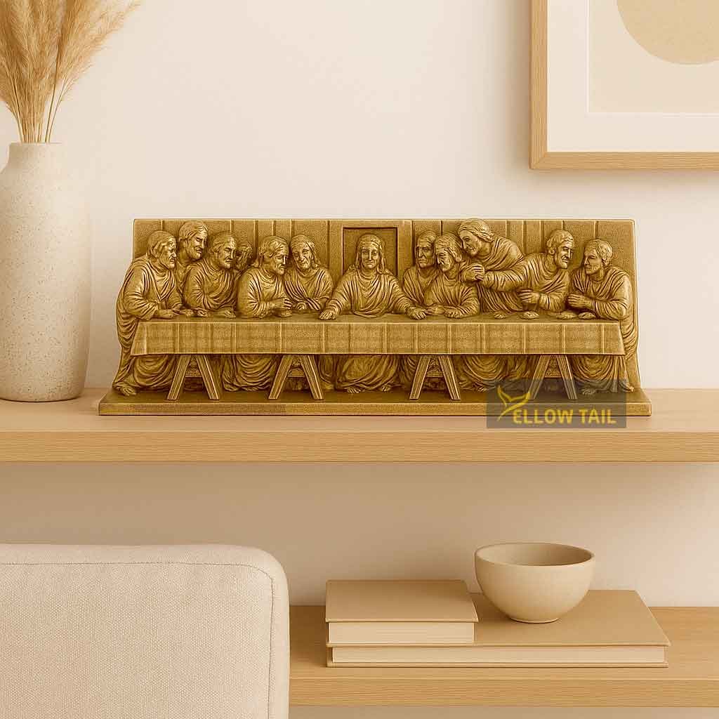 Bring blessings to your home with this polyresin Last Supper Jesus Christ showpiece statue. A perfect Christian home decor and religious gift featuring Jesus and apostles, ideal for living room, prayer room, and church decoration. Durable, elegant, and devotional figurine for gifting and spiritual interiors.