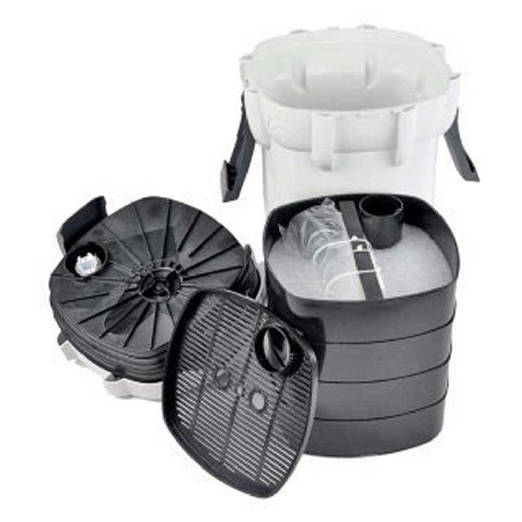 - तीन मीडिया ट्रे और सेल्फ प्राइमिंग पम्प – सिरेमिक रिंग्स, बायो बॉल्स और एक्टिवेटेड कार्बन के लिए उपयुक्त।